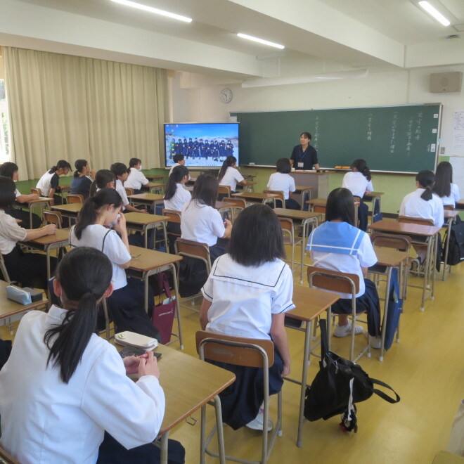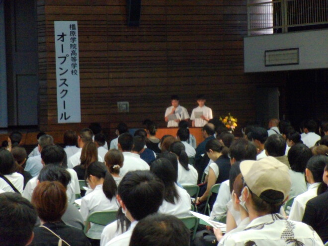 生徒の司会で、各コース(標準・特進・美術科)代表生徒による説明、