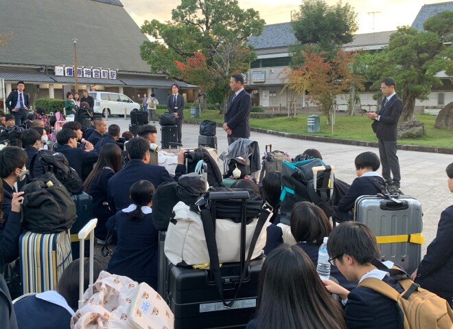 橿原神宮前駅に集合し、17時に関西国際空港に向けてバスで出発しました。